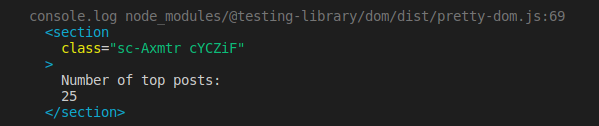 Và trước khi tiếp tục, ta cần tìm một cách nào đó để định danh cho element. Như đã biết, app sẽ hiển thị số lượng top post ở dưới ô nhập text khi request thành công. Dòng chữ hiện lên sẽ là: "Number of top posts: ...", nên ta sẽ dùng findByText